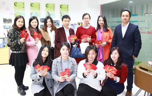 一大早,天資教育集團員工早早到達公司等候在各個辦公室門口,互相分享、互送祝福,氣氛其樂融融。九點整,天資集團董事長黃總和唐總帶領(lǐng)項目總監(jiān)葉總監(jiān)、翁總監(jiān)打開新年第一把鎖,并且為每一位職工分發(fā)新年祝福紅包,希望大家在新的一年再接再厲,實現(xiàn)新跨越,再創(chuàng)新輝煌。