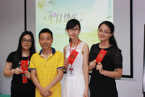 月會(huì)伊始,天資教育集團(tuán)全體員工就在主持人的號(hào)召下一起舞動(dòng)天資教育集團(tuán)之舞——《抓錢舞》和《社會(huì)搖》。在經(jīng)過10分鐘的熱身運(yùn)動(dòng)后,天資教育集團(tuán)全體員工一起為本月壽星們慶祝生日,唱生日歌、切蛋糕、分享生日愿望,此外天資教育集團(tuán)唐總也為壽星們一一贈(zèng)與生日禮物,全場沉浸在活躍、歡樂的氛圍當(dāng)中。