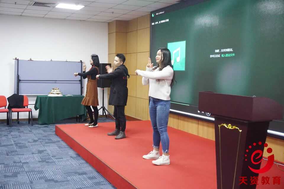 在主持人激昂的開場(chǎng)后,天資全體小伙伴齊跳抓錢舞,一起唱響《我相信》,隨后天資小伙伴與12月的小壽星們同唱生日歌,聽他們分享生日愿望,一同享用生日蛋糕,有這樣的小伙伴,又何懼冬日寒風(fēng)呢?